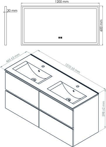 - Livré avec miroir LED Seville 120x60cm avec cadre en aluminium noir.