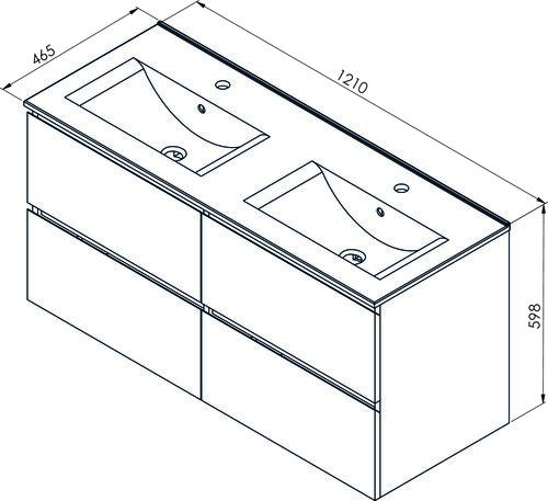 Meuble OSLO à suspendre 4 tiroirs 120cm gris avec vasque noire