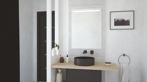 - Miroir de 4 mm d'épaisseur à suspendre sur cadre aluminium avec bandeau LED.