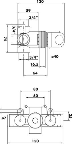 - 2 sorties d'eau mitigée (une vers le haut et une vers le bas).