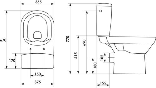 - Mécanisme 3/5 litres à double poussoir affleurant.
