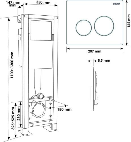 Pack WC suspendu complet autoportant 3/6 litres Ingenio avec plaque de commande - SIAMP