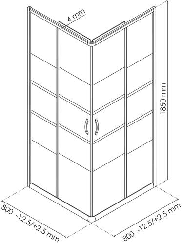 - 2 volets coulissants et 2 panneaux fixes en verre trempé 4 mm avec sérigraphie 3 bandes peintes blanches.