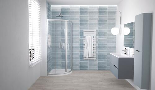 - Profilés de finition aluminium chromé livrés non montés sur paroi.