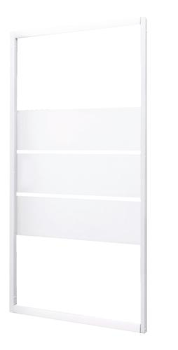 - Parois en verre trempé transparent 4 mm avec sérigraphie 3 bandes blanches.