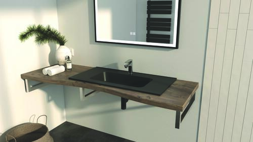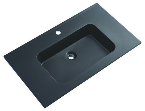 - Plan en résine noir mat avec vasque intégrée à encastrer.