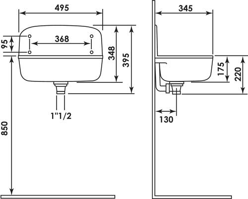 - Livré avec trop-plein, bouchon, chaînette, bonde 40/49, vidage et kit de fixation.