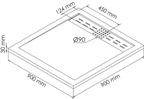 Receveur de douche caniveau résine de synthèse KORI blanc 90x90