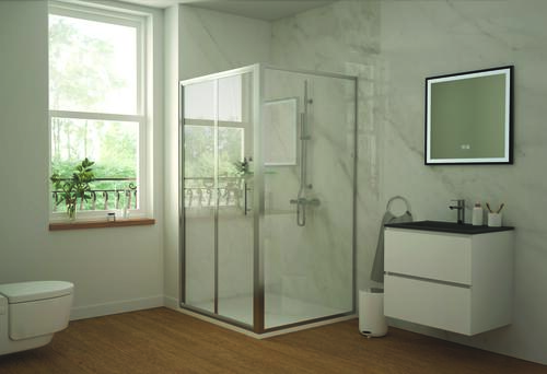- Profilés de finition aluminium chromé livrés montés sur paroi.