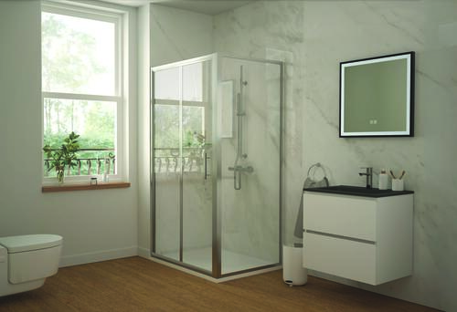 - Profilés de finition aluminium chromé livrés montés sur paroi.