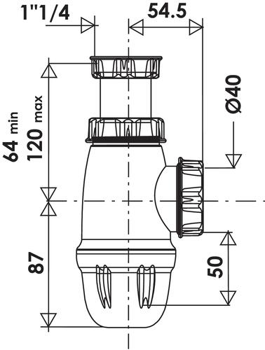 Siphon de lavabo grand culot réglable en hauteur ø40
