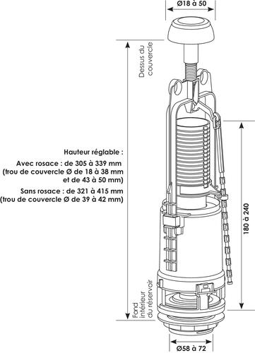 - Adaptable aux réservoirs avec trou de bonde de Diamètre compris entre 58 et 72mm