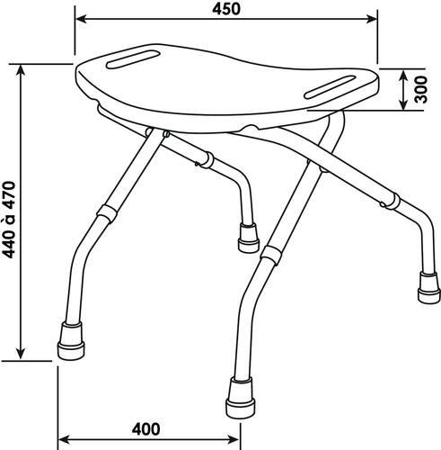 - Pieds aluminium réglables en hauteur de 44 à 47 cm avec embouts anti-dérapants.