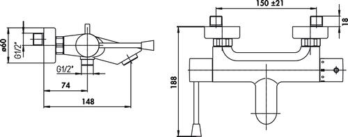 Thermostatique bain-douche à levier médical PMR