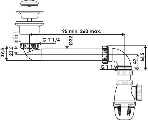 - Cette tubulure gain d'espace pour lavabo ou vasque est ajustable en longueur jusque 29 mm. L'entrée et la sortie sont en 1"1/4 et l'encombrement est de 70 mm.