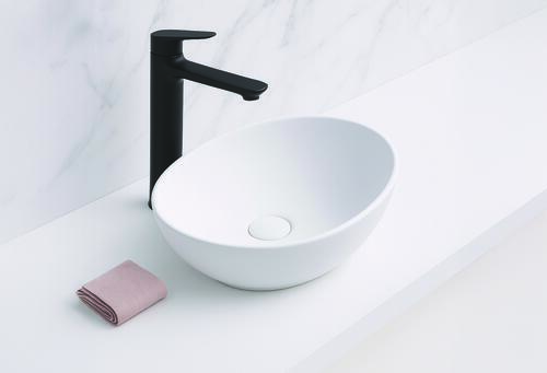 - La vasque à poser PALMA avec sa forme ovale et sa finition blanche mate ajoute une touche moderne et chic.
