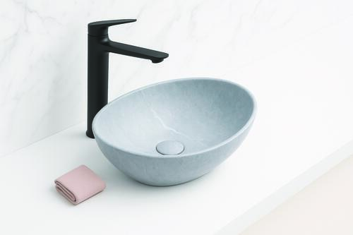 - La vasque à poser PALMA avec sa forme ovale et sa finition Béton ajoute une touche moderne et chic.