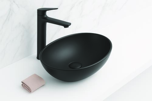 - La vasque à poser PALMA avec sa forme ovale et sa finition noir mat ajoute une touche moderne et chic.