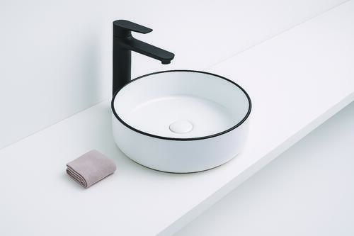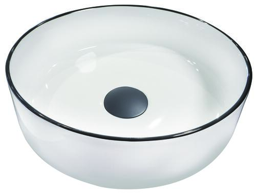 - La vasque ronde à poser TRAMA avec ses bords arrondis et son liseré noir propose un design élégant.