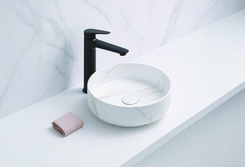 - La vasque ronde à poser MURCIA, en céramique Marbre Blanc, apporte une touche sophistiquée et moderne à votre salle de bain.
