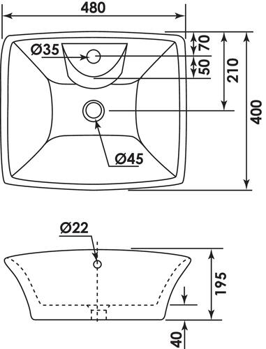 Vasque rectangulaire à poser 48x40cm