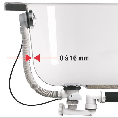 - Siphon à sortie orientable à 360° avec bouchon de vidange
