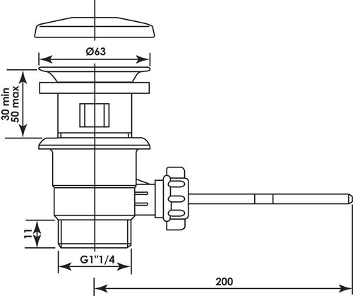 - Corps en laiton et bonde en plastique. Raccordement standard en mâle 33/42