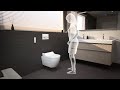 - WC à fond creux émaillé avec détection d'utilisateur, ouverture et fermeture sans contact de l'abattant, chauffe-eau à écoulement libre désactivable, intensité du jet de la douchette réglable sur 5 positions, mouvement du bras de douchette réglable sur 5 positions.